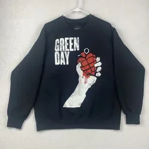 Green Day Graphic Sweater Adult Large Black Sweatshirt American Rock Band