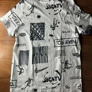 Elevate your casual style with the Nike Men's White JOGA BONITA Graphic T-Shirt. Featuring bold black graphics, this shirt offers a modern and sporty look. Perfect for everyday wear and global soccer fans!!!!