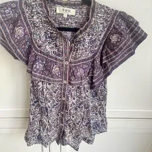 Elevate your wardrobe with this elegant purple floral top from Sea. Perfect for any occasion, this top combines style and comfort effortlessly.