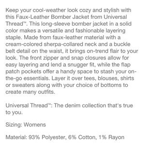 Stay warm and stylish with this chic black and cream bomber jacket by Universal Thread. Perfect for any occasion, this jacket offers both comfort and elegance.