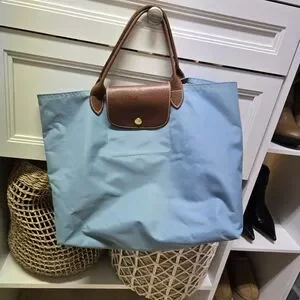 Blue Tote Bag with Brown Accents