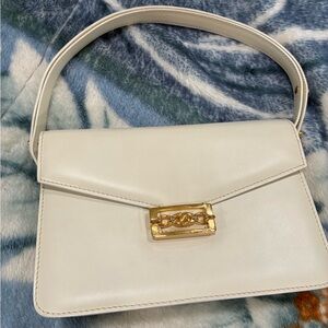 Elegant Vintage Celine White Leather Shoulder Bag