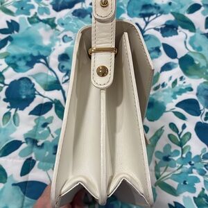 This elegant white leather shoulder bag is perfect for any occasion. Its sleek design and gold-tone hardware add a touch of sophistication to your outfit. Ideal for both casual and formal settings.