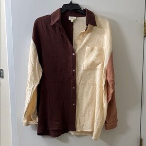 NWOT Color-Block Cream and Brown Blouse
