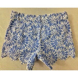 Ann Taylor Loft Shorts Womens 2 All Over Lace Eyelet Riviera Baby Blue Scalloped