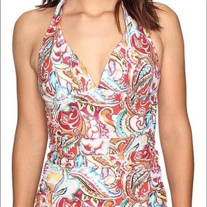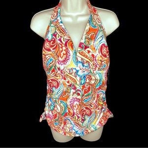 Ralph Lauren Halter Style Paisley Dance Tankini Top Shirred size 16