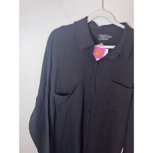 Dressed In Lala Barely There Long Sleeve Semisheer Shirtdress Black NWT $134