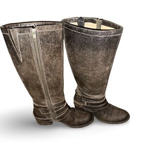Freebird By Steven Irish Leather Buckle Strap Tall Boots in Stone Womens Sz 7