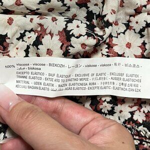 Zara Women's Multi Florals 3/4 Sleeve Long V-Neck Midi Dress Color: Multi-Color Florals Pattern Details: 3/4 Elasticated Sleeves, Elastic Waist, V-Neck with Pullover Buttons Closure, Unlined. Size: Medium Approximate Lay Flat Measurements: Armpit to Armpit: 17" Length: 46.5" front & 48" back Material: 100% Viscose Condition: In a excellent pre-owned condition. * Color in photos may look different due to lighting, screens etc. Pictures 6-8 are the closest color of the dress