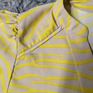 Zebra Animal Print XL Yellow and Tan Puff Sleeve with V-Neck Top