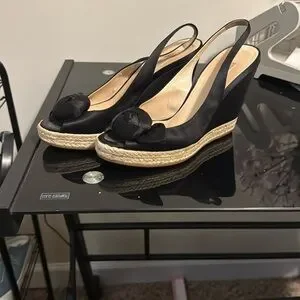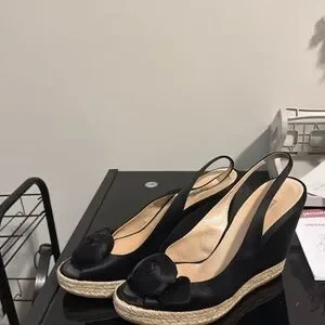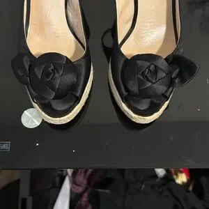 Step into luxury with Prada's black espadrilles, combining timeless elegance with modern style. Crafted with meticulous attention to detail, these shoes feature a sleek black finish perfect for any occasion. The espadrille design adds a touch of casual sophistication, making them a versatile addition to your wardrobe.