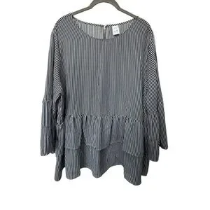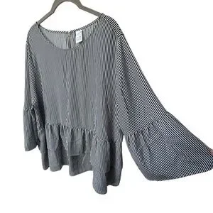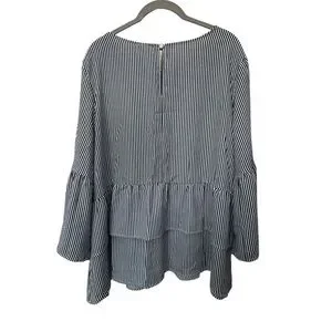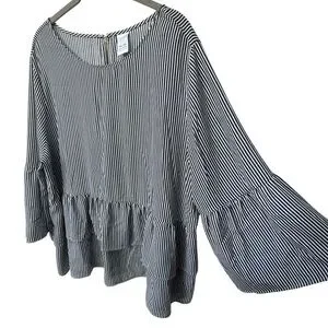 Elevate your wardrobe with this chic striped top. Featuring a classic navy and white design, it's perfect for any occasion. Vertical stripes give slimming effect. Enjoy the comfortable fit and stylish look. Excellent condition! Size 20. Your satisfaction is very important to me, please let me know if you have any questions before purchasing. Thank you for visiting my listing and Happy Shopping!