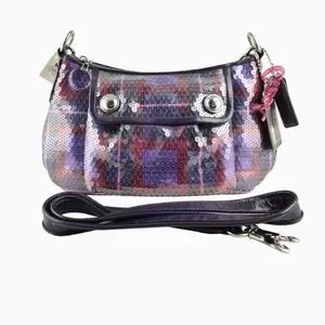 Coach Poppy Tartan Groovy Limited Ed Convertible Bag Y2K Purple+Red Sequins NWT