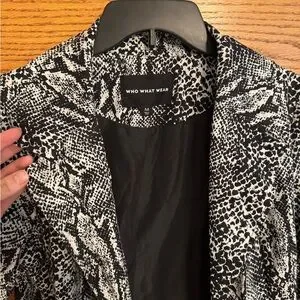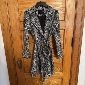 Fun snakeskin print trench coat. Have gotten so many compliments when I wear this coat but it’s unfortunately too small on me now. Great for spring and fall.