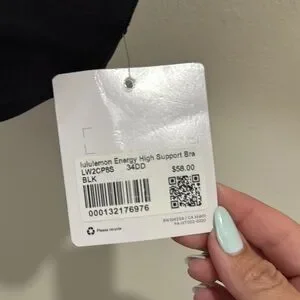 New with tag. Lululemon Energy High Support Bra in Black. This black sports bra from lululemon athletica features a unique strappy back design with a criss-cross pattern, offering both style and support. Made from a stretchy, athletic material, it provides a compression fit ideal for workouts. The classic scoop neckline and versatile color make it a staple piece for any active wardrobe.
