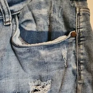 Stylish distressed denim shorts for a trendy look. Perfect for casual outings. Judy Blue 2XL. Has a tiny red dot on fabric. See pictures.