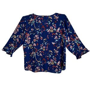Van Heusen Womens Dark Floral Print 3/4 Sleeve Blouse Blue XXL Boho Whimsy