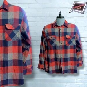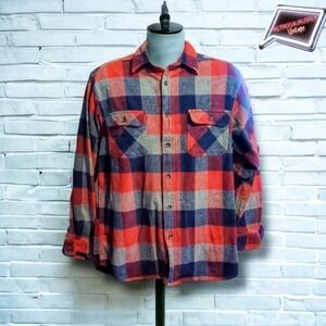 Vintage Men’s Field N’ Forest Blue Plaid Grunge Flannel Shirt, Large