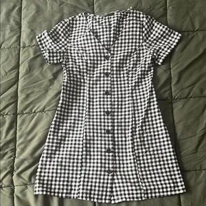 Stylish black and white checkered dress perfect for any occasion. Features a classic button-down front and a flattering fit.