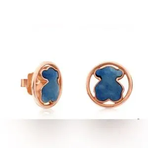 TOUS Camille earrings in rose vermeil silver with quartz and dumortierite. Push back. Size: 1.4 cm. Vermeil: Sterling silver plated with a layer of 18kt rose gold.