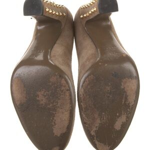 Gucci Suede Tan Block Heel Pumps Gold Studded Accent IT 37.5