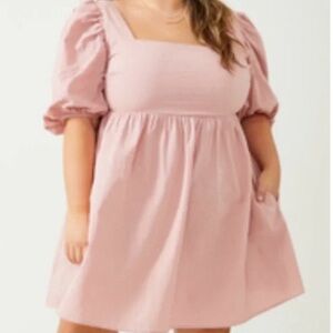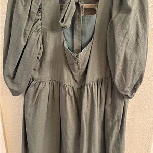 Chic olive green dress with puff sleeves. Perfect for any occasion. Pic of pink is same dress different color shown for fit. Tried on never worn- NWOT