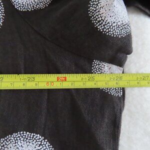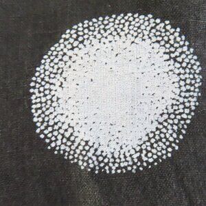 Flaws: one of the circles part of the white is discolored (pictured), small linen thread balls. This dress still has the twine string attachment for the tag (tags removed), so these may possibly be manufacturers defects or occurring during transport.