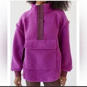 Urban Outfitters BDG Kas Sherpa Pieced Oversized Pullover Sweatshirt Plum/Purple