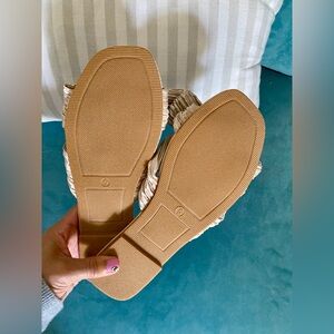 Step out in style with these chic bow sandals. Perfect for any casual outing, these sandals offer both comfort and elegance. These are new and have never been worn.
