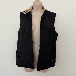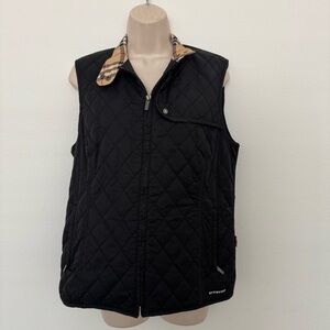 Burberry Golf Black Quilted Vest Size L Nova Check Lining