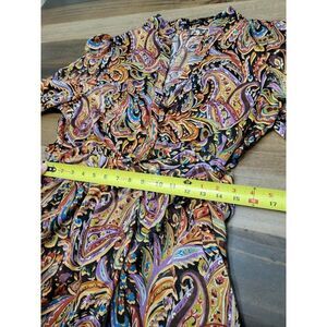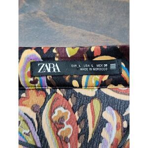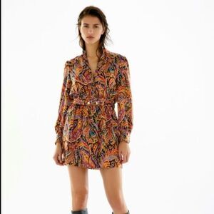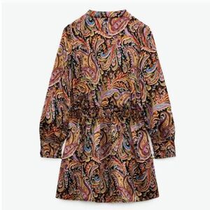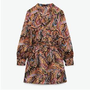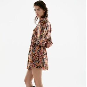 Zara Boho Paisley Mini Dress Long Sleeve Gold Details V Neck Multicolor Size L