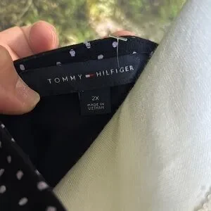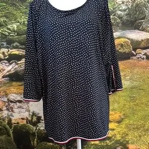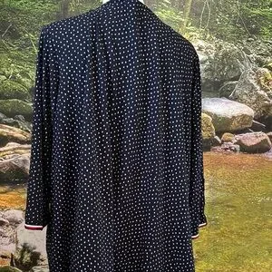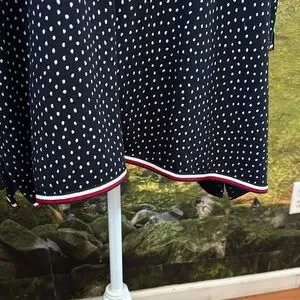 Elegant black dress with white polka dots, perfect for any occasion. Features a comfortable fit and stylish design.