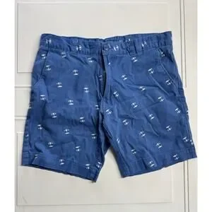 Essex Crossing Mens Short Inseam Shorts Sz 32 Modern Beach Umbrella Graphic Blue