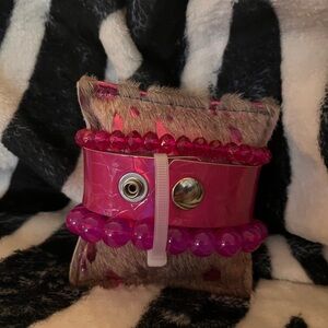 Add a pop of color to your outfit with this vibrant pink beaded and leather bracelet stack. Perfect for any occasion. Thanks for looking.. pillow not included for display only.