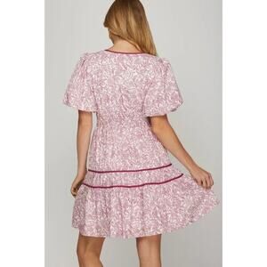 The Printed V-Neck Puff Sleeve Tiered Dress is a charming and feminine choice for various occasions. This dress features a flattering V-neckline, puff sleeves for a touch of drama, and tiered layers for a flowy and romantic silhouette. The printed design adds a playful and stylish element to the dress. Pair it with sandals or heels for a chic and effortless look that is perfect for spring and summer events.