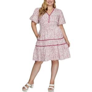 She + Sky Full Size Printed V-Neck Puff Sleeve Tiered Dress Plus Size
