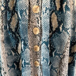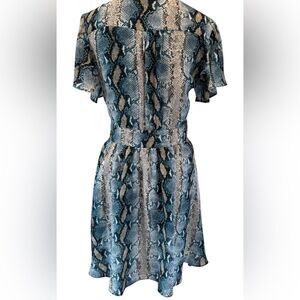 Embrace a breezy, resort-ready look with this Buddy Love sundress, featuring a striking blue and white pattern. The dress boasts a daring plunge neckline and short flutter sleeves, adding a touch of femininity and movement. Its cinched waist and flowy mini skirt create a flattering silhouette perfect for casual outings.