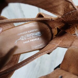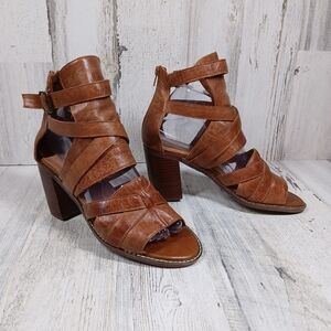 Jeffrey Campbell x Free People Cognac Brown Leather Block Heel Sandals #733