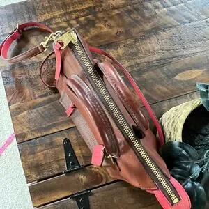 Coach Mini Bleeker Riley Carry All Leather Purse with Coral Accents Crossbody