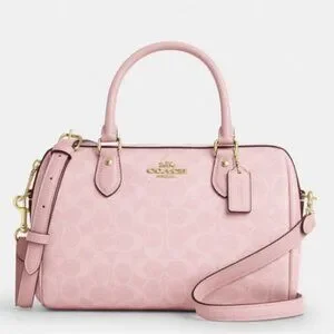 Coach Rowan Satchel Bag In Signature Canvas Powder/Pink