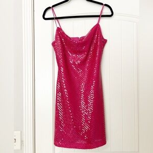 LIKELY Eve Sequin Mini Dress in Pink Fuchsia
