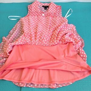 NWT Amy's Closet Girls Polka Dot A-Line Chiffon Belted Dress Lined - Button down - Coral Peach - Size 6