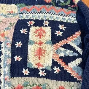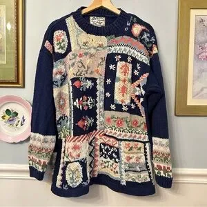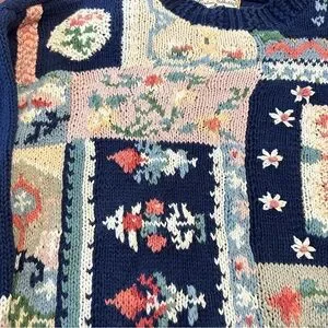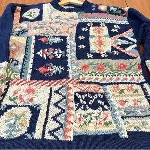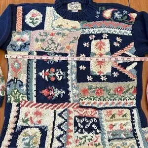 Heirloom Collectibles Vintage Patchwork Knit Sweater Cottagecore Sz Medium Ramie