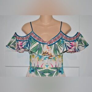 FLYING TOMATO BoHo Multi Ruffle Strappy Tropical Jumpsuit size S