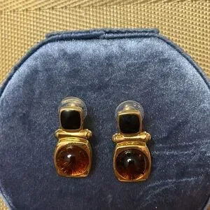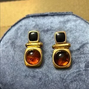 Gold tone cabochon stud earrings Faux amber and black enamel From the Joan Rivers collection- QVC Excellent condition