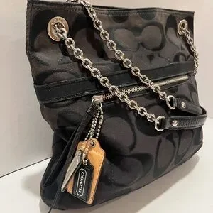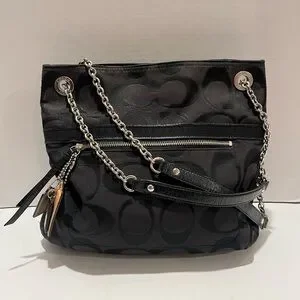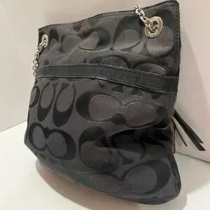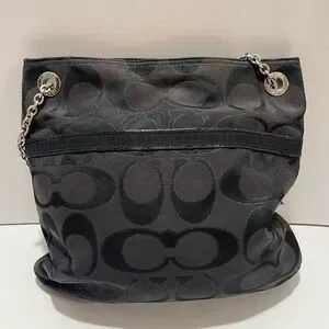 Coach Poppy Signature Logo Canvas Shoulder Bag
