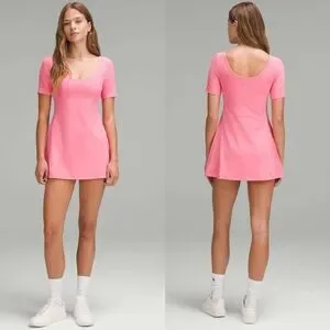 Lululemon Align Short Sleeve Dress Athletic Mini Dress Sakura Pink 10 12 NWT