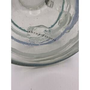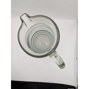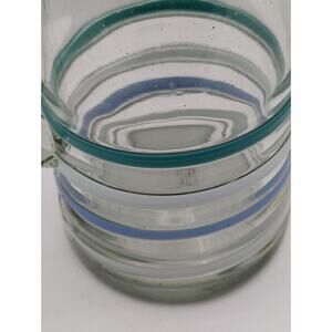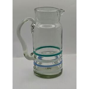 Anthropologie Hand Blown Art Glass Pitcher Blue and Green Stripes 9.5 Inches