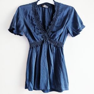 BCBGMaxAzria silk spandex shorts sleeve top sizeXS