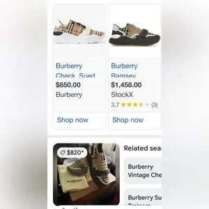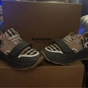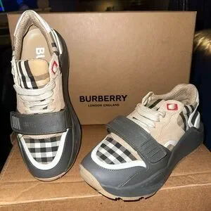 Stylish Burberry check suede shoes. Elegant design with classic check pattern.